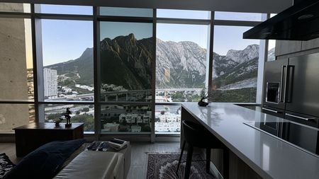 Hermoso departamento amueblado ubicado en Las Huastecas, el departamento cuenta con un área social amplia con muy buena iluminación y un balcón con una vista increíble a la montaña La Huasteca. Hermosos acabados, dos recámaras con posibilidad de una tercera. Cocina completamente equipada. Las Huastecas cuenta con amplias áreas verdes y amenidades, vitapista, albercas, área de asadores, terrazas, salón de eventos, salones de TV, gimnasio, cancha de basquetbol, fútbol, parque para niños, salón de entretenimiento etc. Ubicado frente al Consulado Americano, muy cerca del Colegio Americano, Vía Cordillera, etc. Pet Friendly. Seguridad las 24/7 IV.