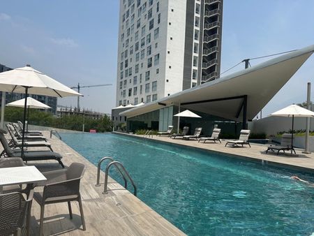 Excelente departamento con vista a La Huasteca en la Torre Cielo piso 15. El departamento está equipado con persianas, cocina, aire acondicionado, canceles, bodega y dos cajones de estacionamiento. Cuenta excelentes amenidades como alberca, gimnasio, jardín, petfriendly, salón de eventos y con seguridad 24/7. MC